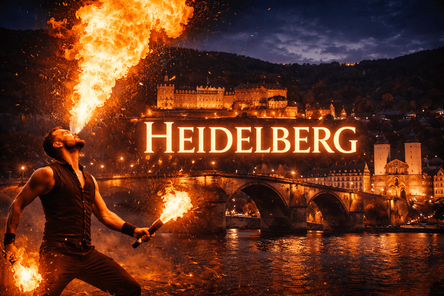 Heidelberg zählt zu den romantischsten Städten Deutschlands. Zwischen Schlossruine, Neckarufer und historischer Altstadt finden jedes Jahr zahlreiche Hochzeiten, Firmenveranstaltungen, Galas und private Feiern statt. Wenn Sie eine Feuershow in Heidelberg buchen oder professionelle Feuerkünstler buchen in Heidelberg möchten, sind Sie bei uns genau richtig.