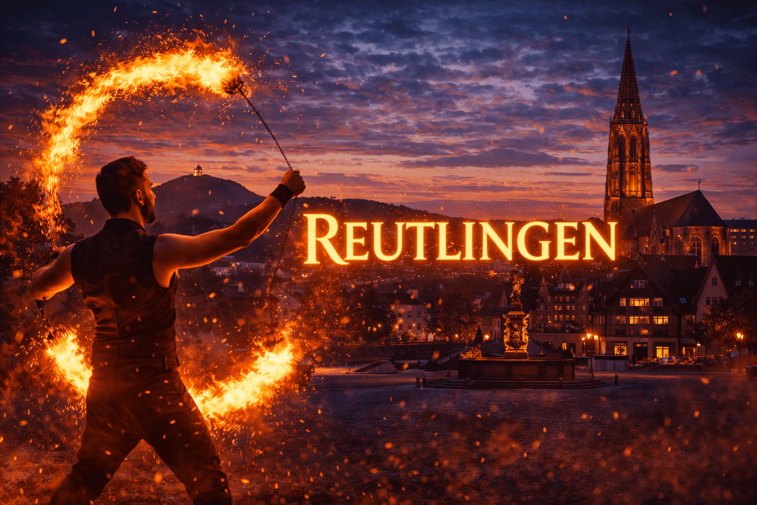 Reutlingen am Fuße der Schwäbischen Alb bietet eine ideale Kulisse für stilvolle Hochzeiten, Firmenfeiern und Stadtveranstaltungen. Zwischen historischer Altstadt, Achalm und modernen Eventlocations finden jedes Jahr zahlreiche private und öffentliche Events statt. Wenn Sie eine Feuershow in Reutlingen buchen oder professionelle Feuerkünstler buchen in Reutlingen möchten, sind Sie bei uns genau richtig.