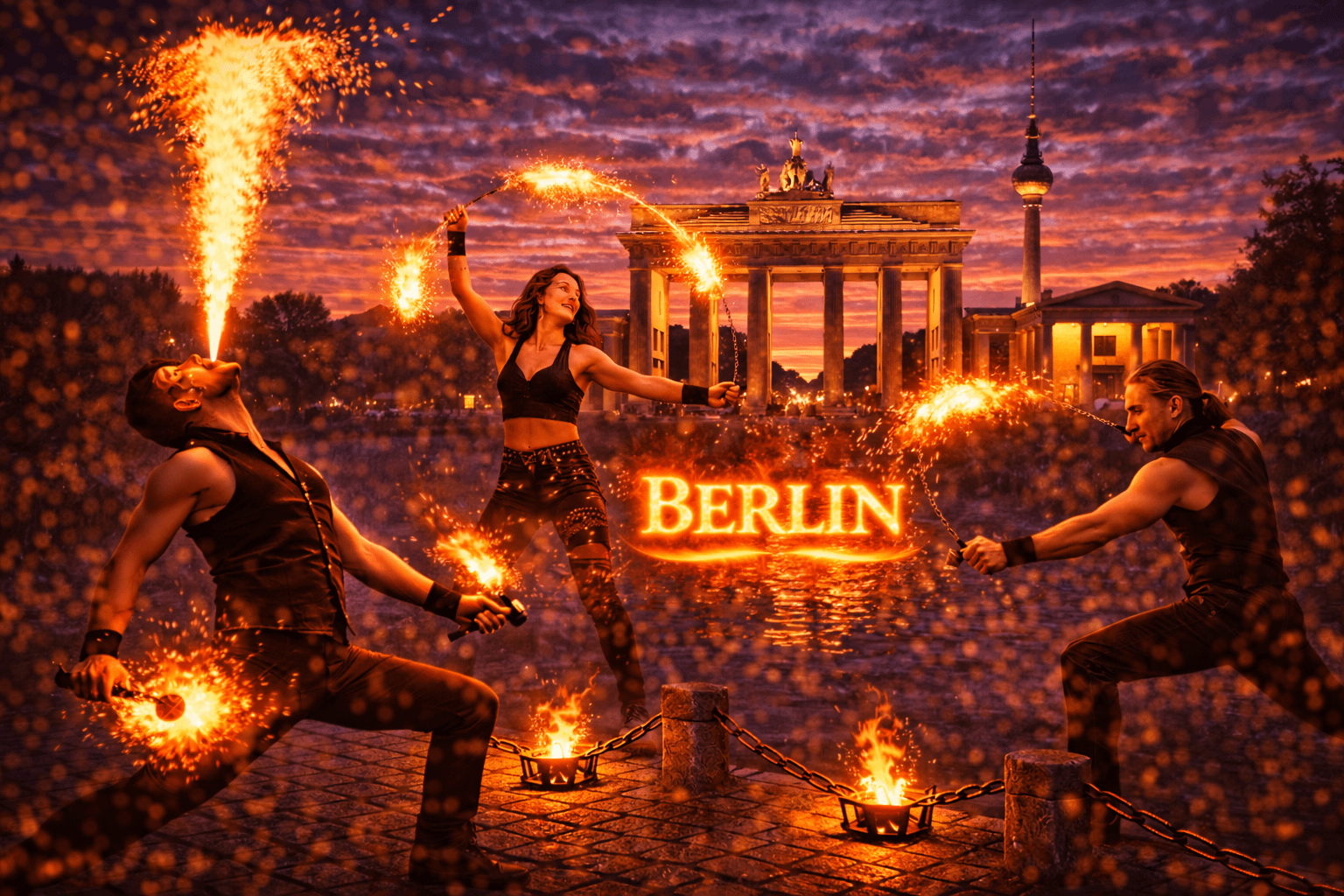 Berlin ist international geprägt. Gäste und Besucher haben hier bereits vieles gesehen – deshalb werden außergewöhnliche Showacts besonders geschätzt. Genau hier entfalten unsere Feuershows ihre volle Wirkung.