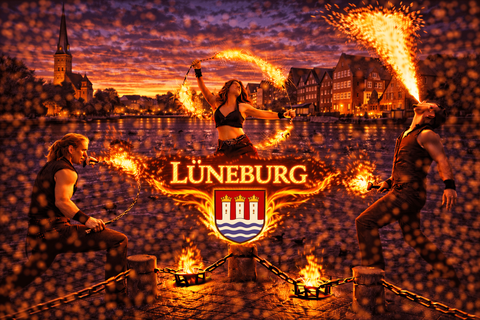 Lüneburg gehört zu den schönsten historischen Städten Norddeutschlands und begeistert mit seiner gut erhaltenen Altstadt, den zahlreichen Backsteingebäuden und einer lebendigen Kulturszene. Die traditionsreiche Hansestadt bietet mit ihren historischen Plätzen, Parks und Eventlocations eine außergewöhnliche Kulisse für Veranstaltungen jeder Art. Zwischen Marktplatz, Stintmarkt und verschiedenen Veranstaltungsorten finden jedes Jahr Hochzeiten, Firmenfeiern, Stadtfeste und private Events statt. Wenn Sie eine Feuershow in Lüneburg buchen oder professionelle Feuerkünstler buchen in Lüneburg möchten, sind Sie bei uns genau richtig.