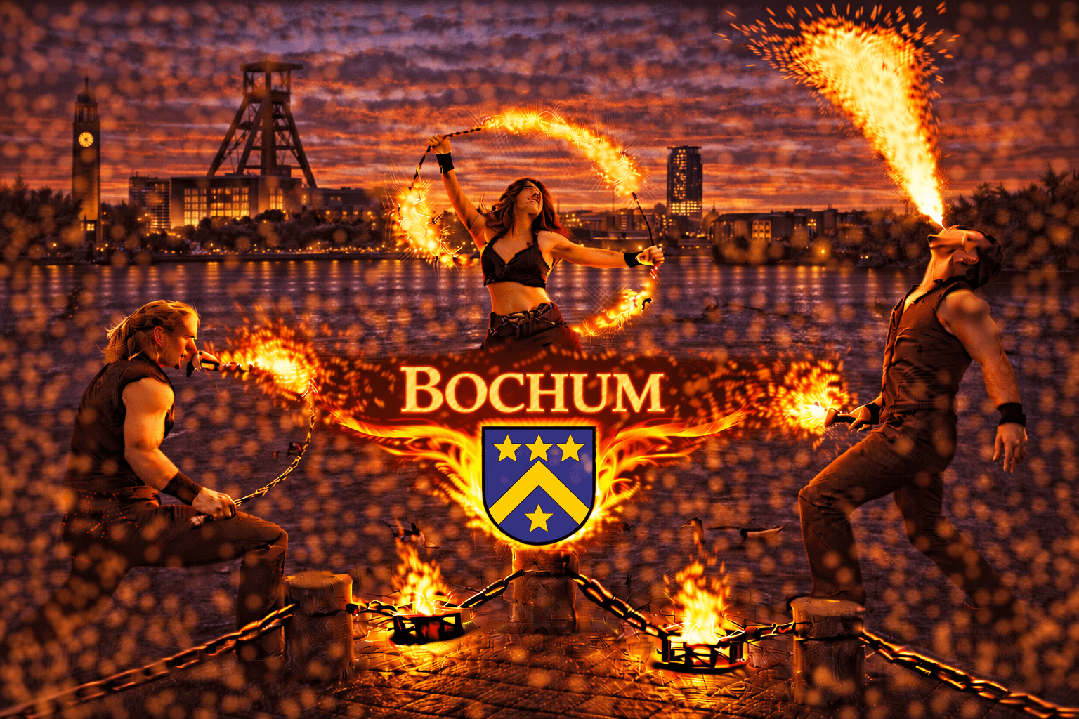 Bochum gehört zu den größten Städten im Ruhrgebiet und ist bekannt für seine lebendige Kulturszene, zahlreiche Veranstaltungen und eine lange Industriegeschichte. Die Stadt bietet mit ihren Eventlocations, Parks und Veranstaltungsflächen eine hervorragende Kulisse für außergewöhnliche Events. Zwischen Innenstadt, Bermuda3Eck und verschiedenen Veranstaltungsorten finden jedes Jahr Hochzeiten, Firmenfeiern, Stadtfeste und private Veranstaltungen statt. Wenn Sie eine Feuershow in Bochum buchen oder professionelle Feuerkünstler buchen in Bochum möchten, sind Sie bei uns genau richtig.