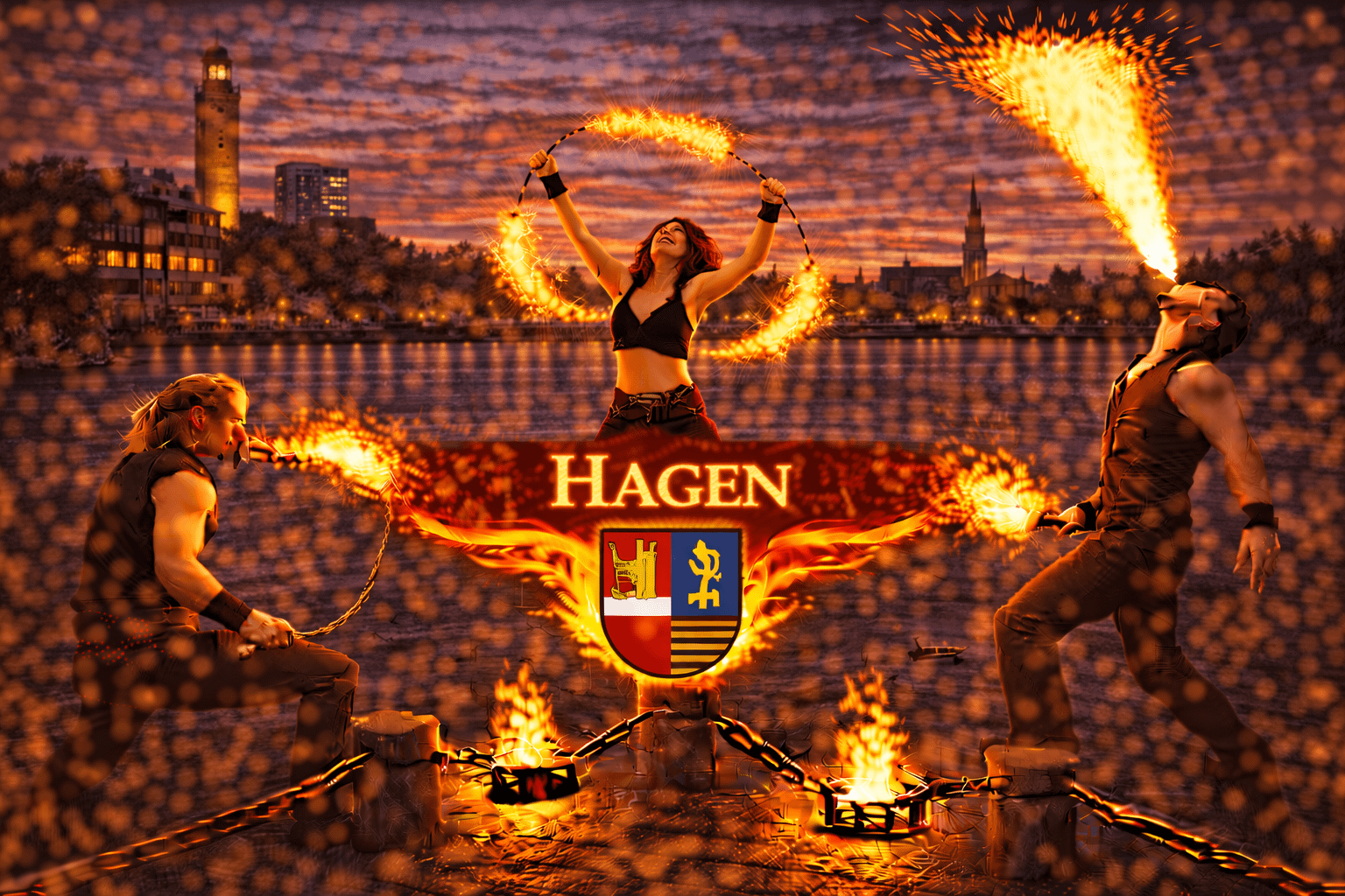 Hagen liegt am südlichen Rand des Ruhrgebiets und wird oft als „Tor zum Sauerland“ bezeichnet. Die Stadt verbindet Industriegeschichte, grüne Landschaften und eine lebendige Kulturszene miteinander. Zwischen Innenstadt, Freilichtmuseum und zahlreichen Veranstaltungsorten finden jedes Jahr Hochzeiten, Firmenfeiern, Stadtfeste und private Veranstaltungen statt. Wenn Sie eine Feuershow in Hagen buchen oder professionelle Feuerkünstler buchen in Hagen möchten, sind Sie bei uns genau richtig.