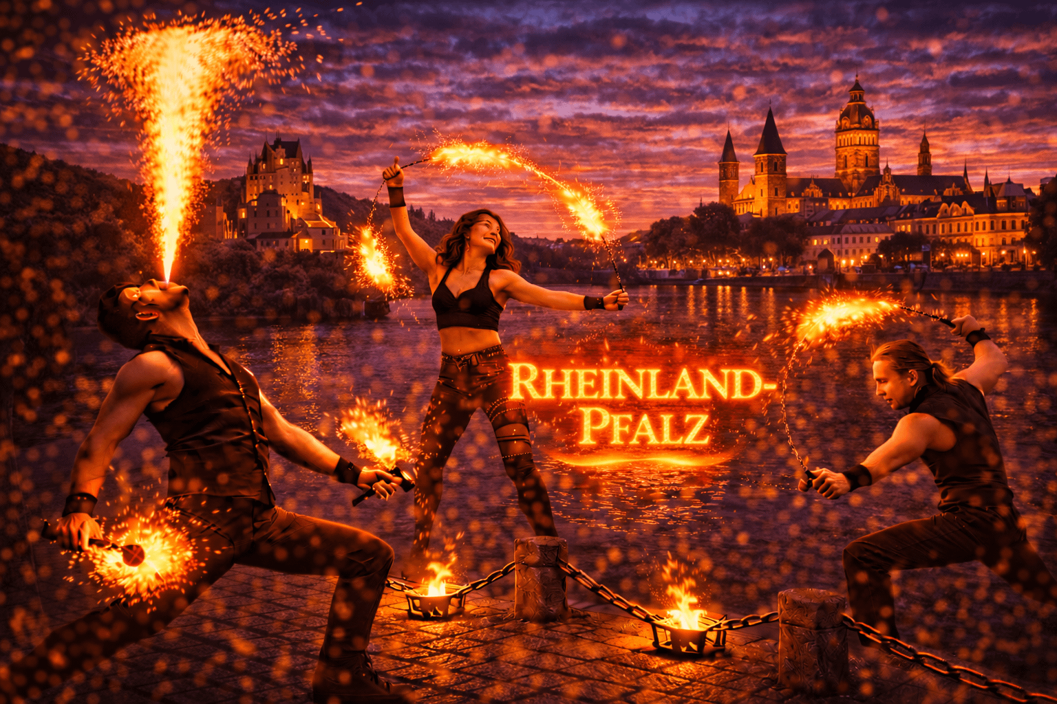 Rheinland-Pfalz zählt zu den romantischsten Veranstaltungsregionen Deutschlands. Zwischen Rhein, Mosel, Pfälzer Wald und zahlreichen Weinorten finden jedes Jahr unzählige Hochzeiten, Firmenveranstaltungen, Stadtfeste und private Feiern statt. Immer mehr Veranstalter möchten deshalb eine Hochzeit Feuershow buchen, um ihrem Event ein außergewöhnliches Highlight zu verleihen.
