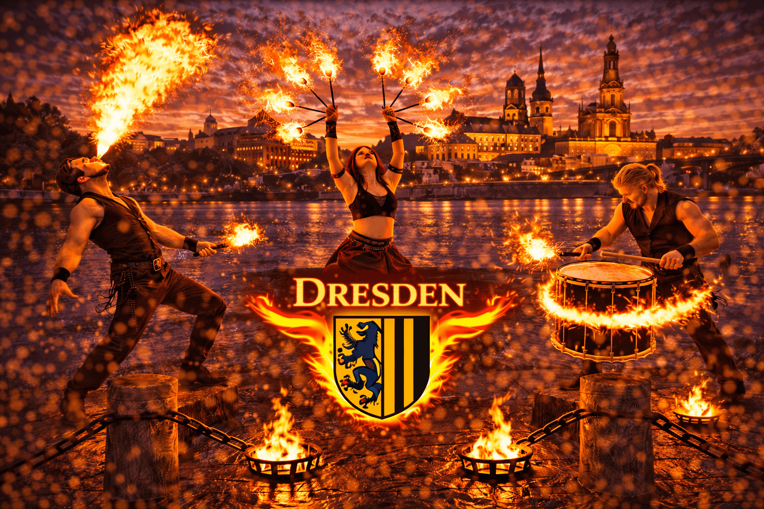 Dresden gehört zu den schönsten und kulturell bedeutendsten Städten Deutschlands. Die sächsische Landeshauptstadt ist weltbekannt für ihre barocke Altstadt, beeindruckende Bauwerke und zahlreiche Veranstaltungen. Zwischen Elbufer, Altstadt und modernen Eventlocations finden jedes Jahr Hochzeiten, Firmenveranstaltungen, Festivals und private Feiern statt. Wenn Sie eine Feuershow in Dresden buchen oder professionelle Feuerkünstler buchen in Dresden möchten, sind Sie bei uns genau richtig.
