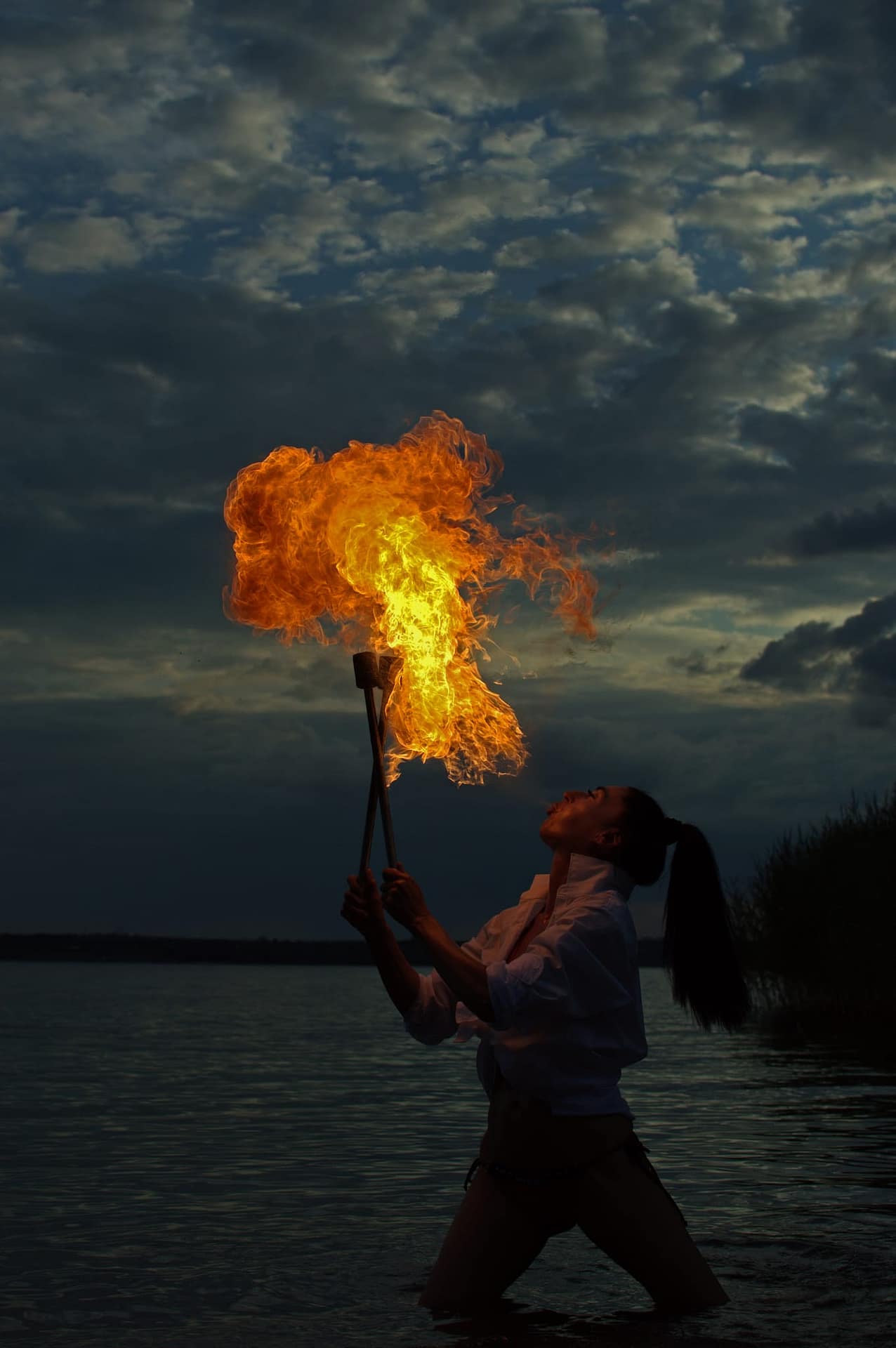 - Feuerspucken mit großen Flammenstößen