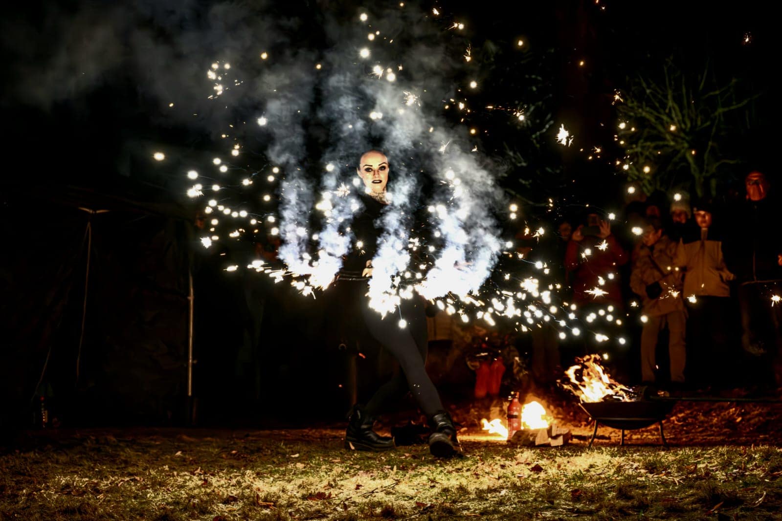 - 🔥 Funkenregen, Großflammen, Feuerfächer, Poi-Shows & Feuerspucken