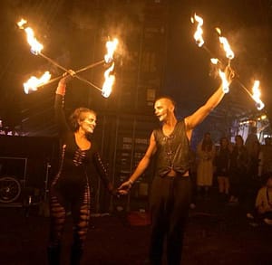 Pärchen-Feuershow Performer, LED-Lasershow Duos – alles aus einer Hand.